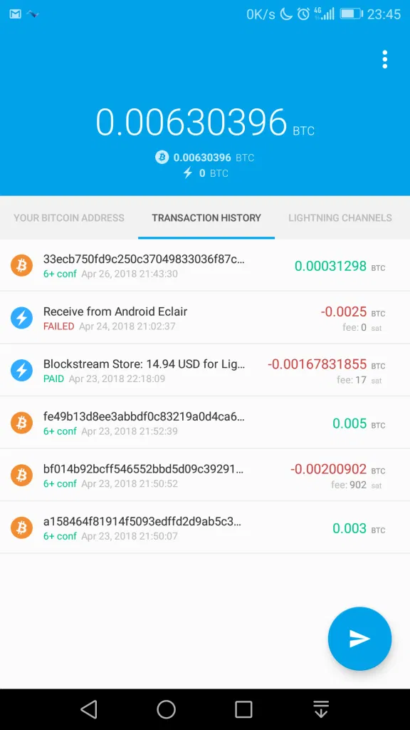 - Apr 23, 2018 22:18:09 There! This is my very first LN transaction. As 5000+ folks before me, I used it to buy some dumb Lightning stickers from the Blockstream store.