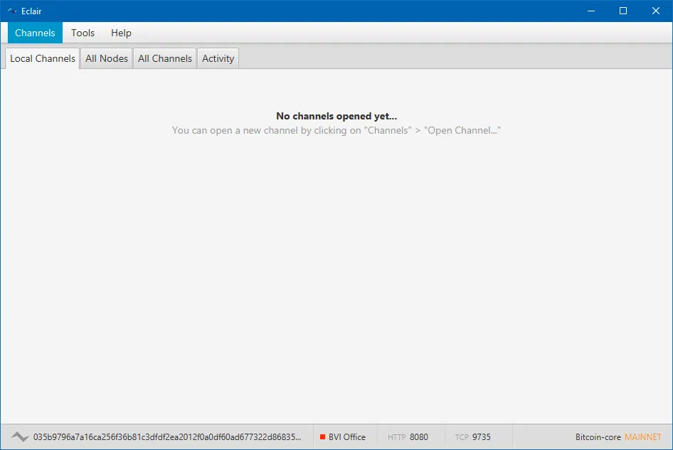 I installed Eclair under Windows, and my only head-scratching moment was where I should put the eclair.conf file. Installation notes said it goes in ~\.eclair which I assumed was the folder where the Eclair JRE executable was located ( C:\Users\{username}\AppData\Eclair\). However this was not the right location and the program failed to start telling me it couldn’t communicate with the Bitcoin Core node. Once I moved the config file to C:\Users\{username}\.eclair\, Eclair launched and connected to my node.