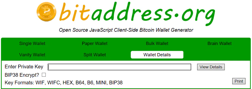 - Go to bitaddress.org and click on